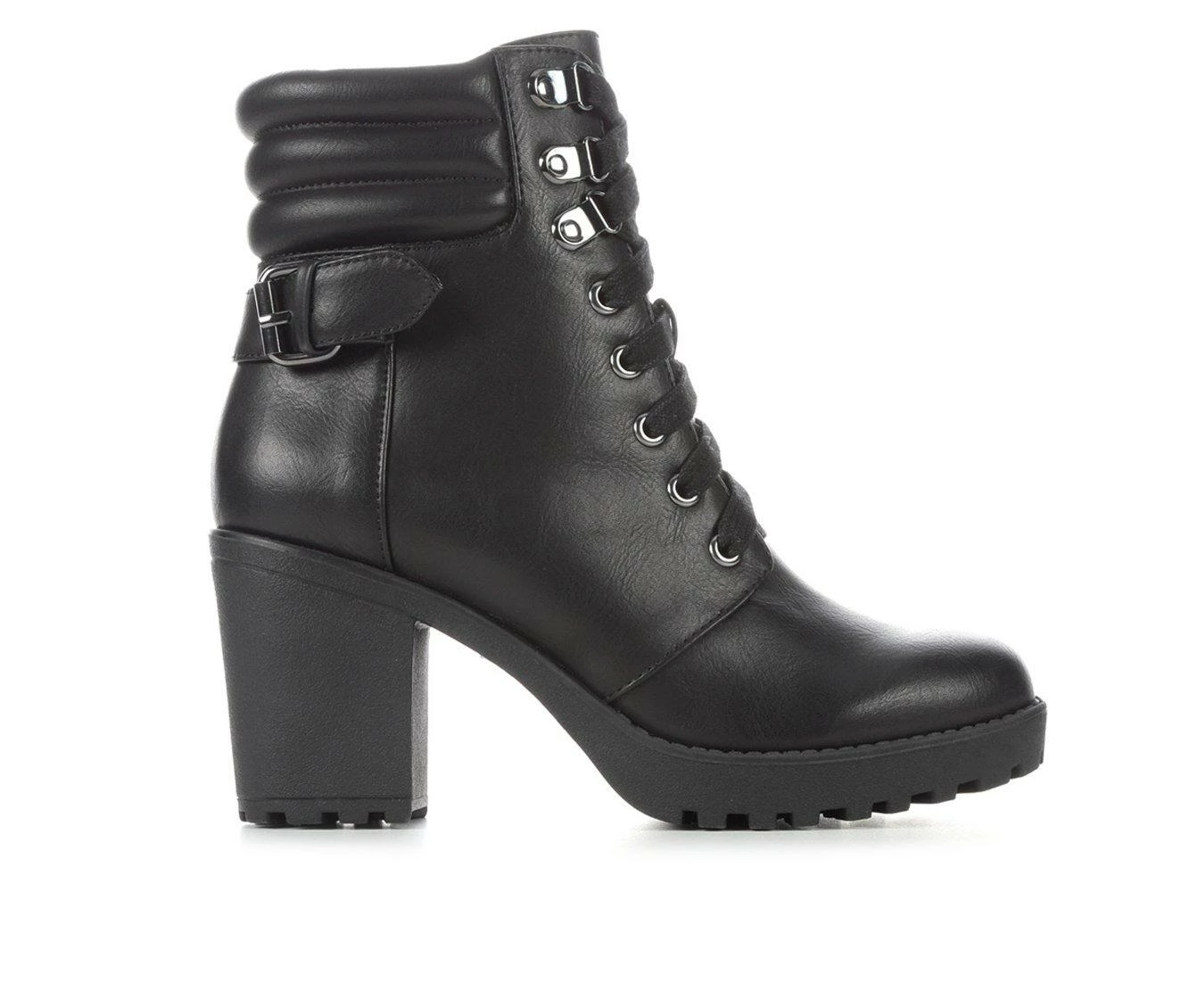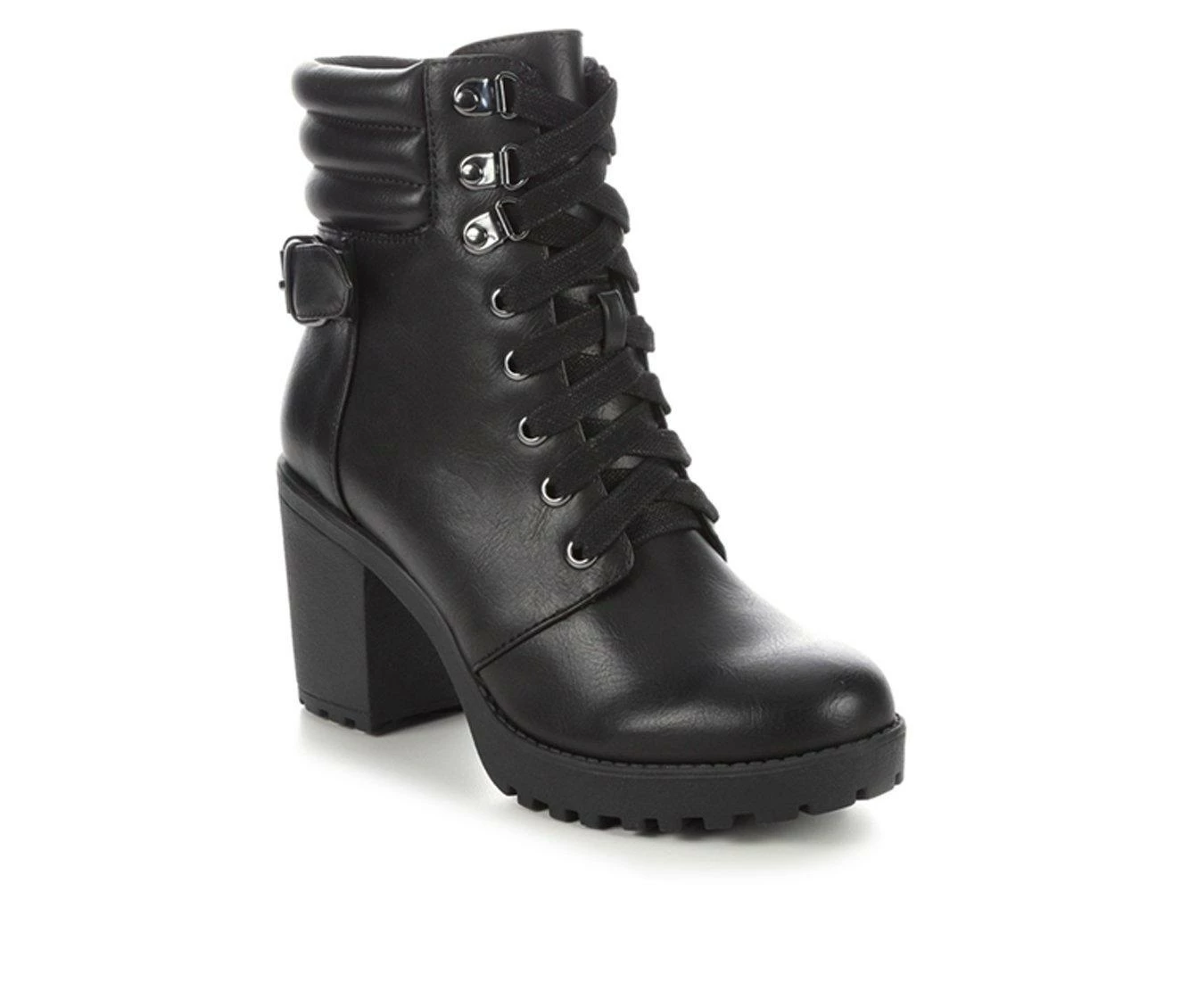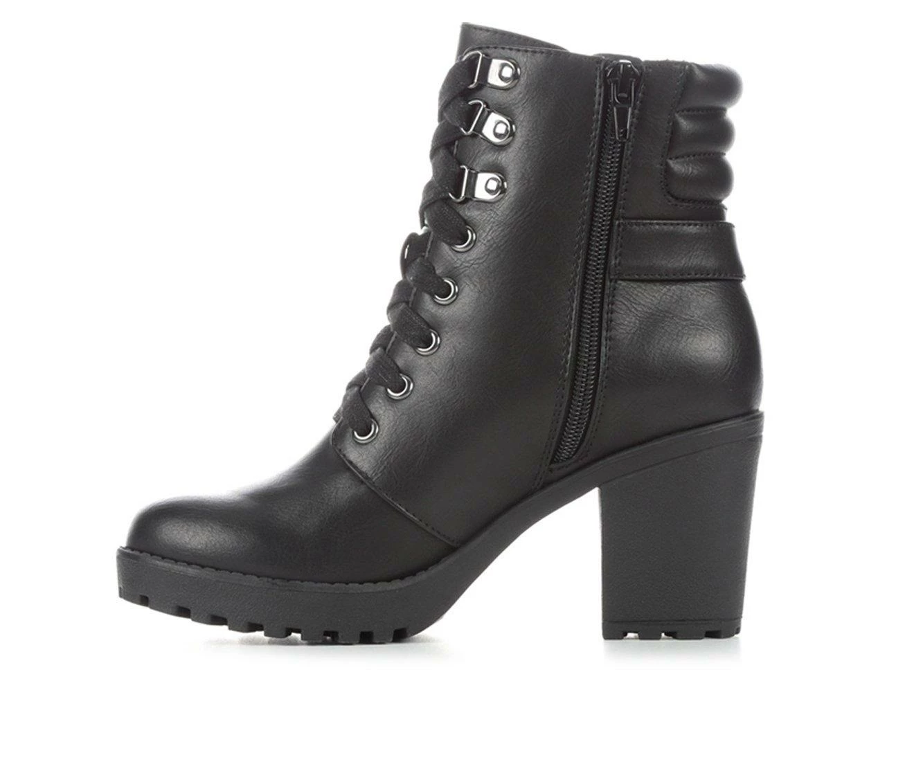 Deals β€οΈ Women’s XOXO Jackie Heeled Combat Booties Black β